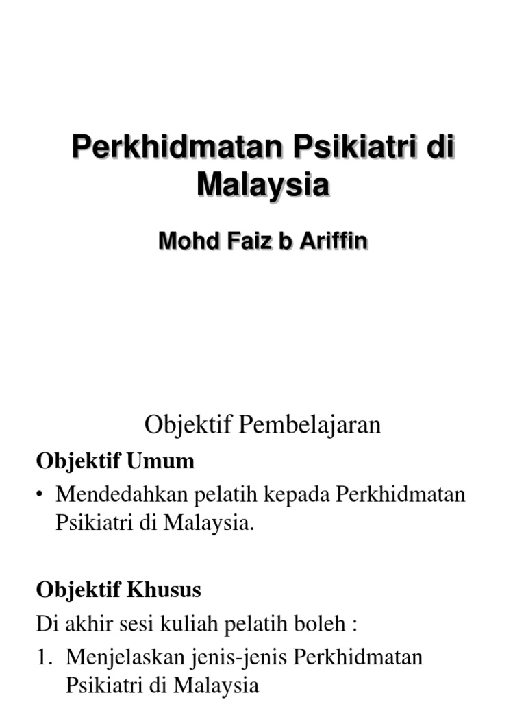 2 7 1b Perkhidmatan Psikiatri Di Malaysia Faiz Pdf
